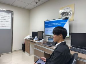 M1 薦田さん,渡辺さんが研究発表を行いました。発表・質疑応答をこなしているように見えましたが,終了後,質問に適切に答えることができなかったと反省していました。回数をこなすことで,質疑応答も慣れてくるのではないかと思います。