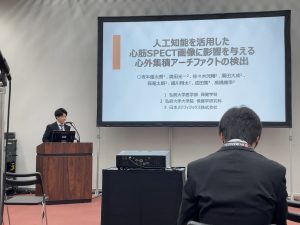 奥田先生をはじめ、M1の新垣さん、B4の丑越さん、坂本、松田さんが研究発表を行いました。核医学の最前線でご活躍されている先生方の前での発表は緊張しましたが、皆さん堂々と発表しており、大変立派でした。