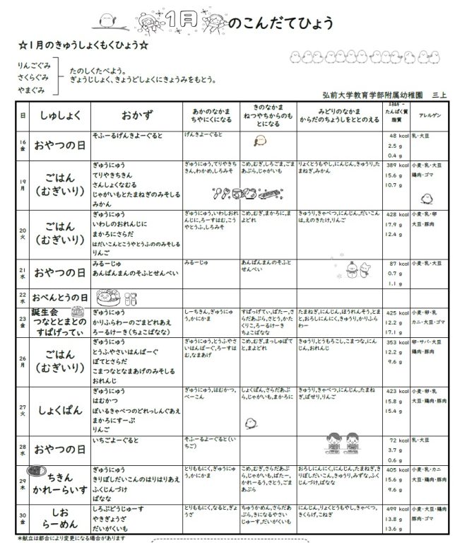 1月の献立表